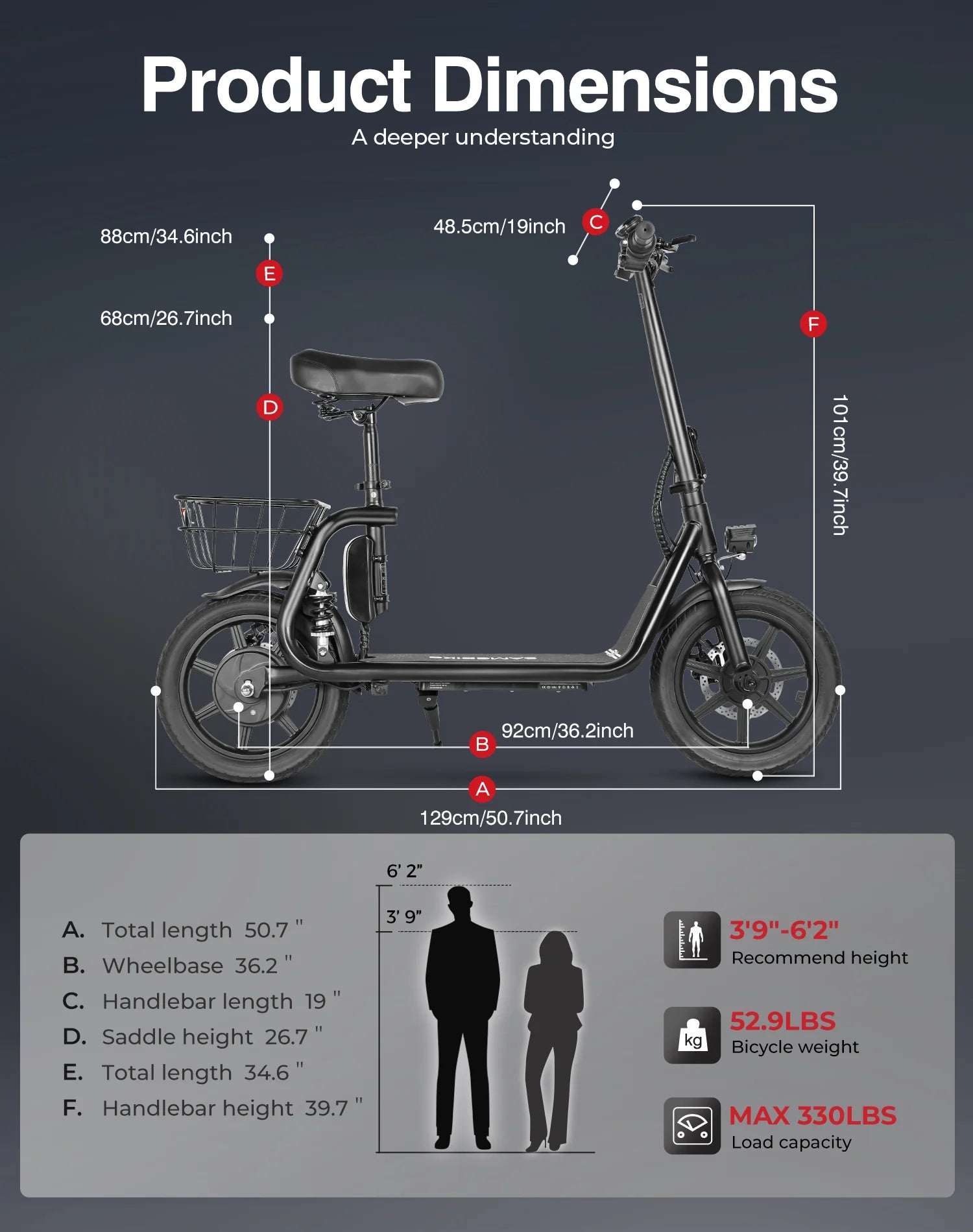 SAMEBIKE SM-C02 is a step-through foldable electric scooter with seat suitable for any height. It is suitable for city riding and commuting, and can also be carried for travel.