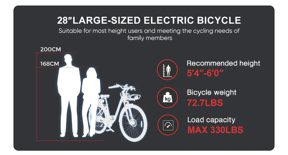 Le SAMEBIKE RS-A07 est un vélo électrique urbain doté de pneus de 2,8 pouces, d'un panier avant et d'un porte-bagages arrière, ce qui le rend idéal pour les déplacements quotidiens, les déplacements en ville et le transport de marchandises.