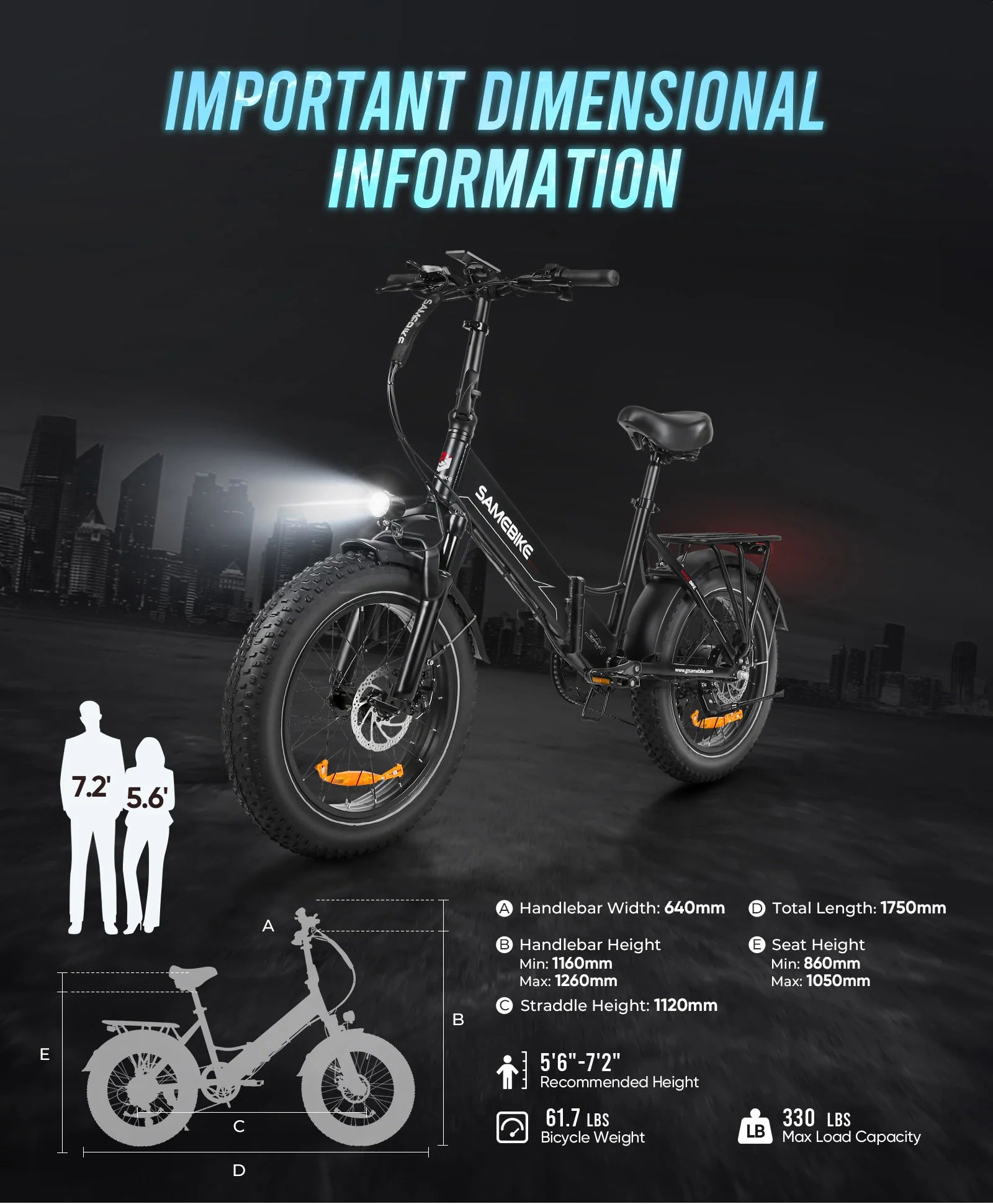 SAMEBIKE LOTDM200-II is a step-through fat tire folding electric bike suitable for any height. It is suitable for beach, off-road, city riding and commuting, and can also be carried for travel.